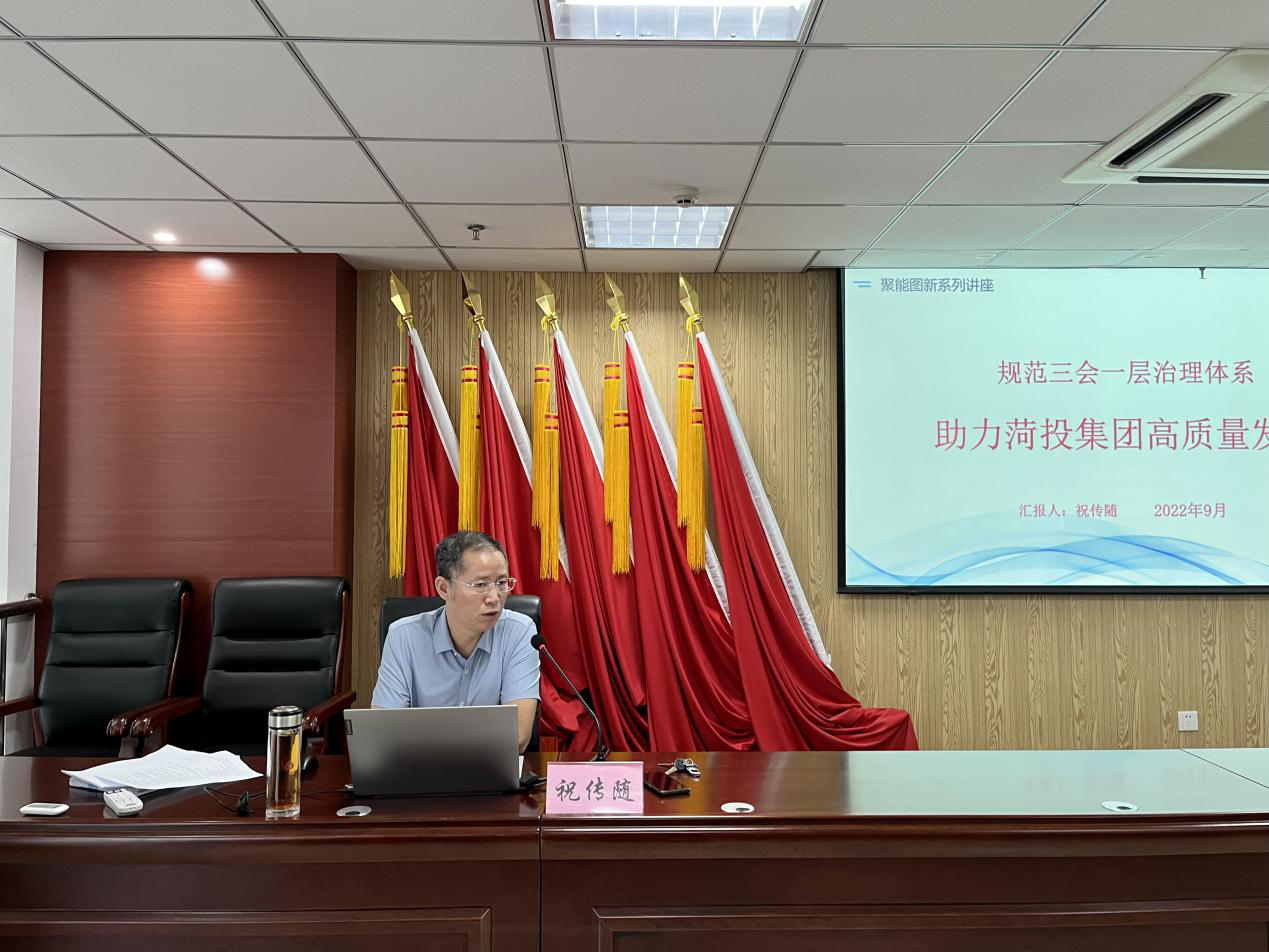 9月17日,菏投集團(tuán)干部職工“聚能圖新”系列培訓(xùn)第五講在公司第六會議室舉行。公司黨委委員、副總經(jīng)理祝傳隨圍繞“規(guī)范三會一層治理體系 助推公司高質(zhì)量發(fā)展”開展專題培訓(xùn)。